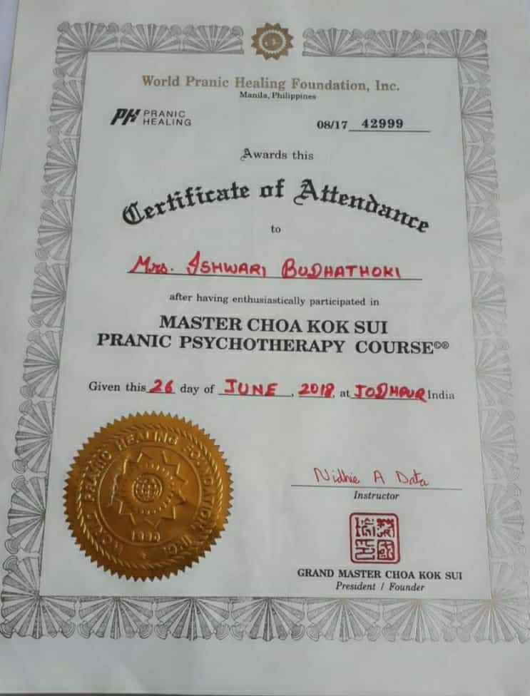 After learning pranic healing, she started taking pranic healing sessions for patients with simple cases related to pain, and then gradually she became capable to heal physical, emotional & mental cases. She has successfully healed many cases related to depression, relationship problem, addiction, ADHD depression, frustration, anger, irritation, psychological problem, financial blockages, etc